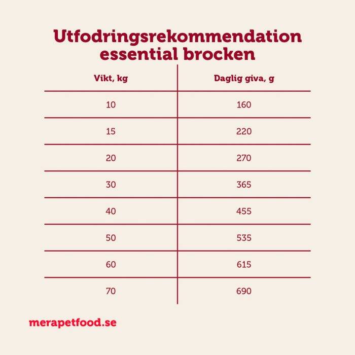 Utfodringsrekommendation för mera essential Brocken
