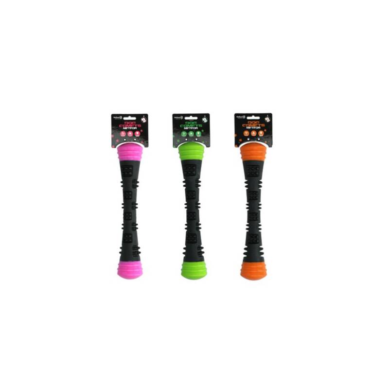 Denna kastleksak är tillverkad av slitstarkt gummi och studsar perfekt. Materialet från leksaken masserar tandköttet och stöder tandhälsan. Med pip för ännu mer lek.. En leksak som dessutom flyter i vatten!