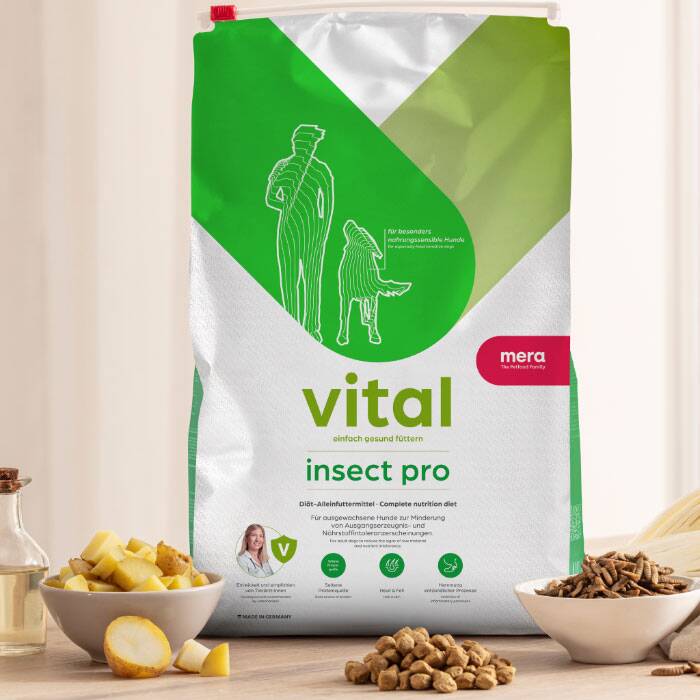 mera vital dog Insect Pro för vuxna hundar med foderallergi eller näringsintolerans