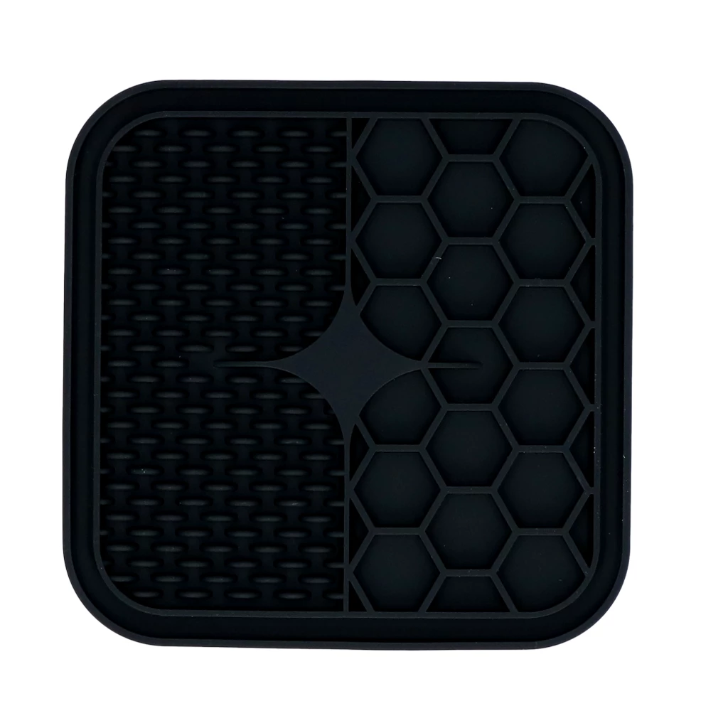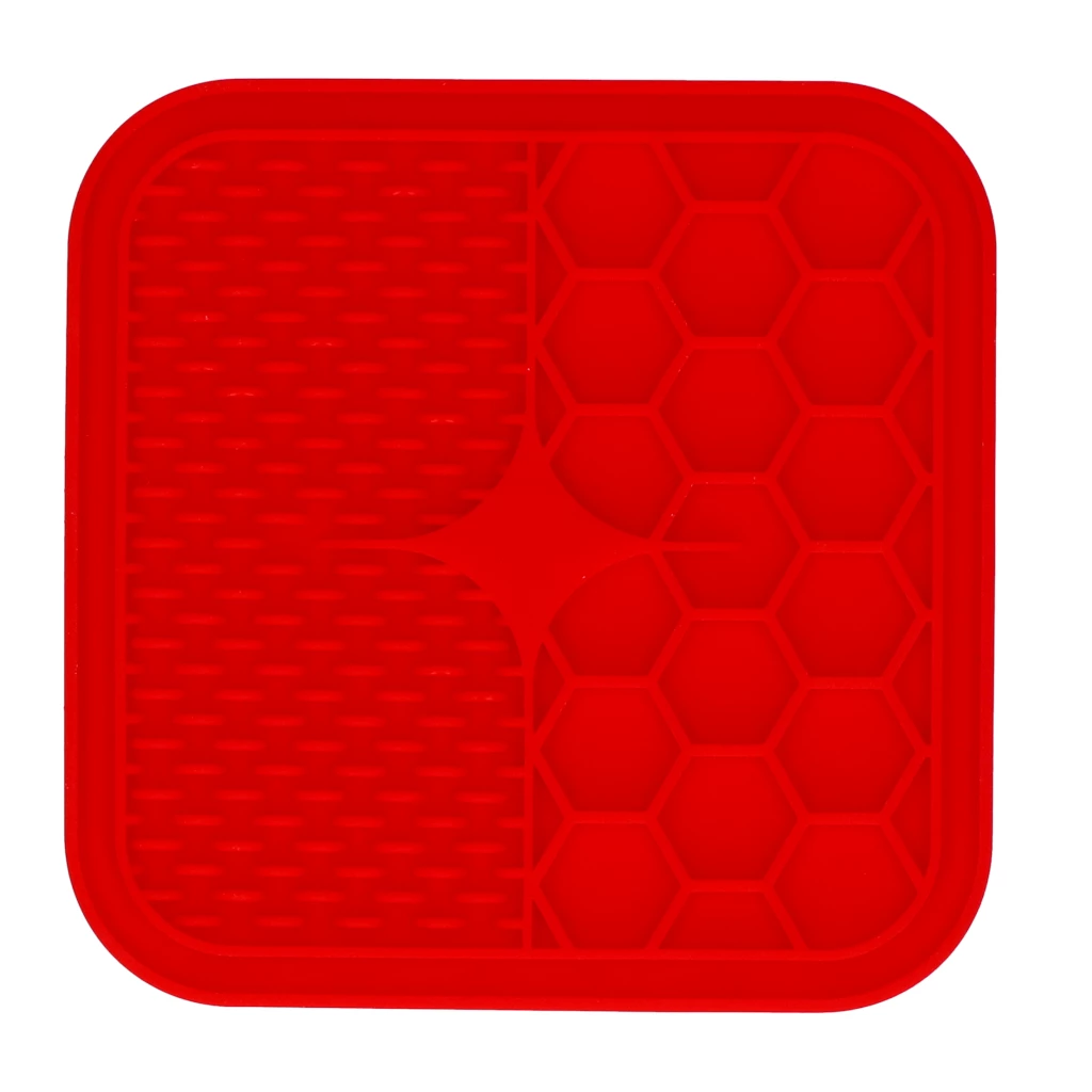Dessutom, för mindre raser, är denna matta perfekt att använda som en långsam matmatta. Eftersom våtfodret måste slickas från mattan kommer hunden att ta längre tid att göra det och slukandet av maten kommer vara ett minne blott. Detta gynnar hundens hälsa och tänder.