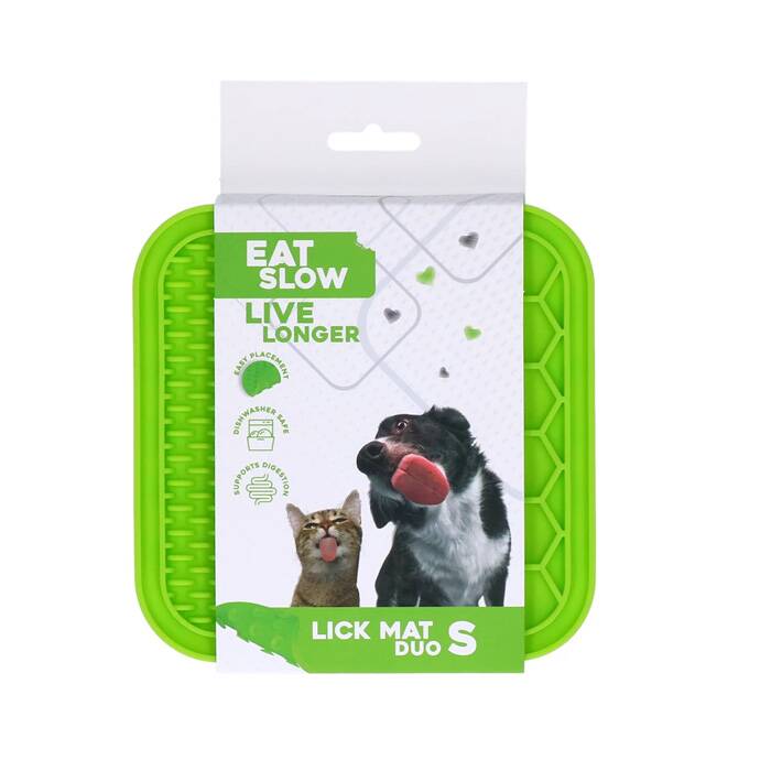 Eat Slow Live Longer slickmattan är idealisk att använda när en hund till exempel är rädd eller tycker det är obehagligt att bli borstad eller tvättad. Att slicka har en lugnande effekt.
