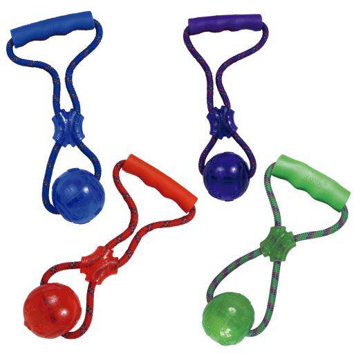 Den perfekta interaktiva leksaken för dig och din hund. KONG Squeezz Ball med handtag, designad för hållbarhet med en skyddad pip.