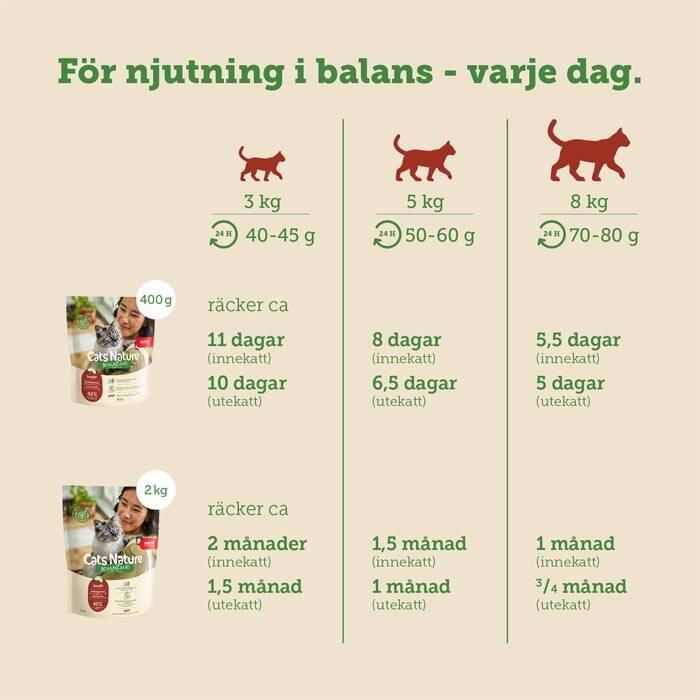 Alla ingredienser är noga utvalda – från hållbara insektprotein till naturliga råvaror från pålitliga producenter. Dessutom tillverkas hela serien mera Cats Nature i Tyskland med 100 % grön el och förpackas i 100 % återvinningsbara material.