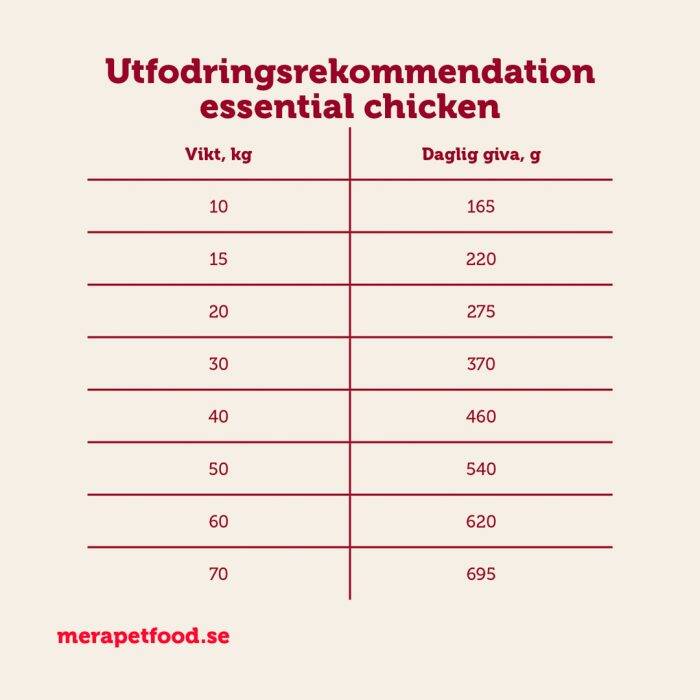 mera essential Chicken är ett komplett helfoder för vuxna hundar med smak av kyckling