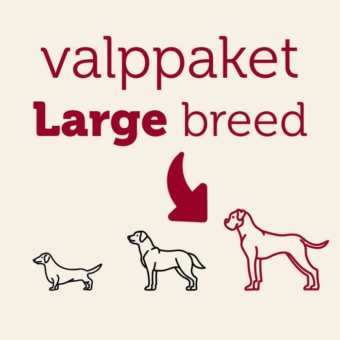 Valppaket Large breed passar för alla raser, men är extra viktig för större raser från senast 6 månaders ålder.