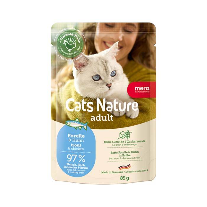Testa våtfoder mera Cats Nature adult Trout – ett naturligt gott våtfoder med forell och välfärdskyckling