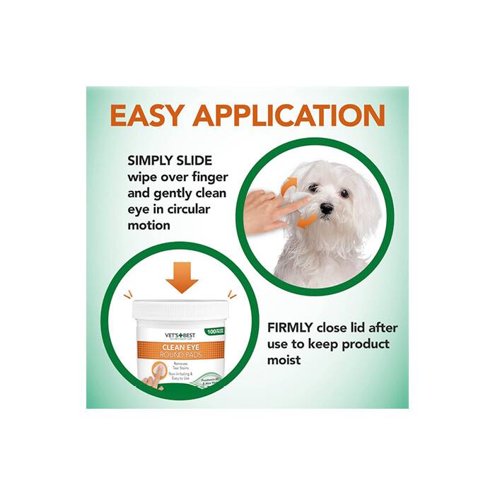 Upptäck fördelen med Vet’s Best Clean ögonpads för enkel och skonsam ögonrengöring till din hund. Dessa praktiska färdigfuktade rondeller är berikade med naturliga ingredienser som effektivt tar bort tårränder och missfärgningar från din hunds päls.